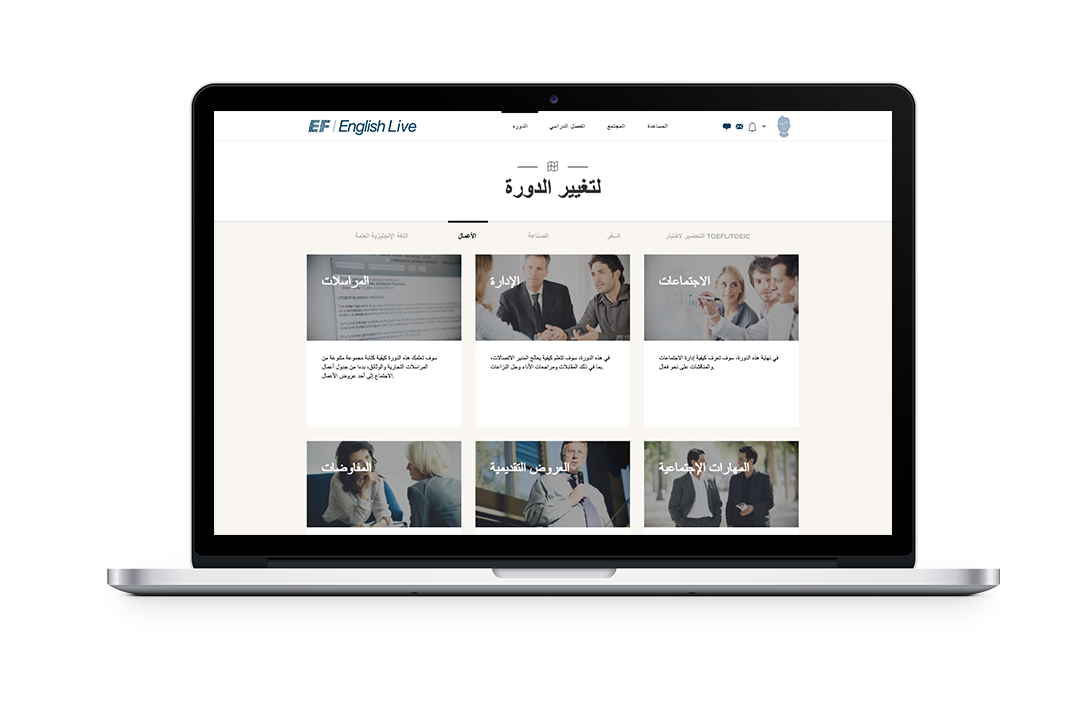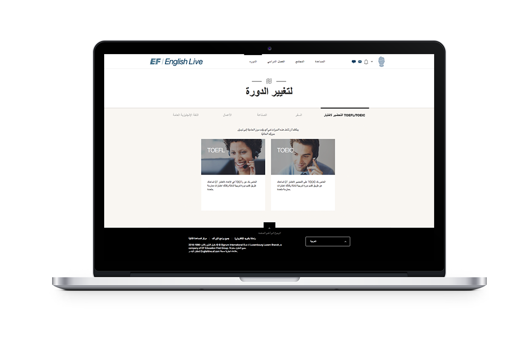 رغم أن هدفنا الرئيسي في EF انجلش لايف هو تقديم وسيلة فعالة لتعلم الانجليزية بسهولة، إلا أننا في ذات الوقت نحرص على أن يكون تعليماً وفق أُسس ومعايير عالمية، وعبر منهج متسلسل مكون من 16 مستوى متوافق مع الإطار الأوروبي المرجعي العام للغات (CEFR) من مستوى A1 إلى C2.